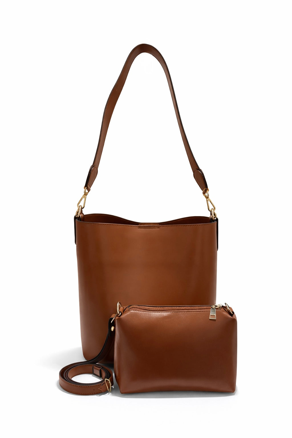 Versatile 2-in-1 Design: Includes a large structured bucket bag and a matching zippered inner pouch that can be used independently as a crossbody or clutch.